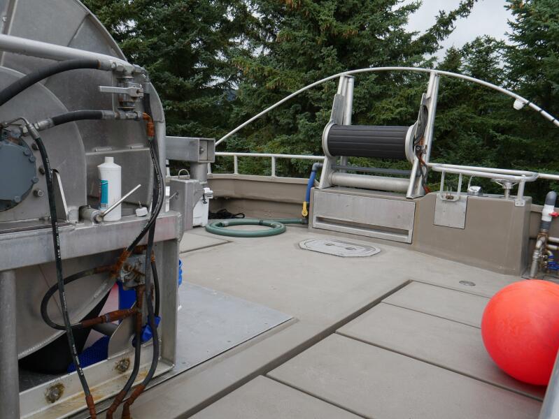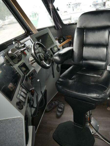 Enjoy a spacious galley, full head with shower, washer/dryer, and sleeping accommodations for 8, making it perfect for extended trips or charters. The boat packs up to 20,000 lbs in insulated holds, and advanced navigation with Time Zero keeps you on course in any condition.